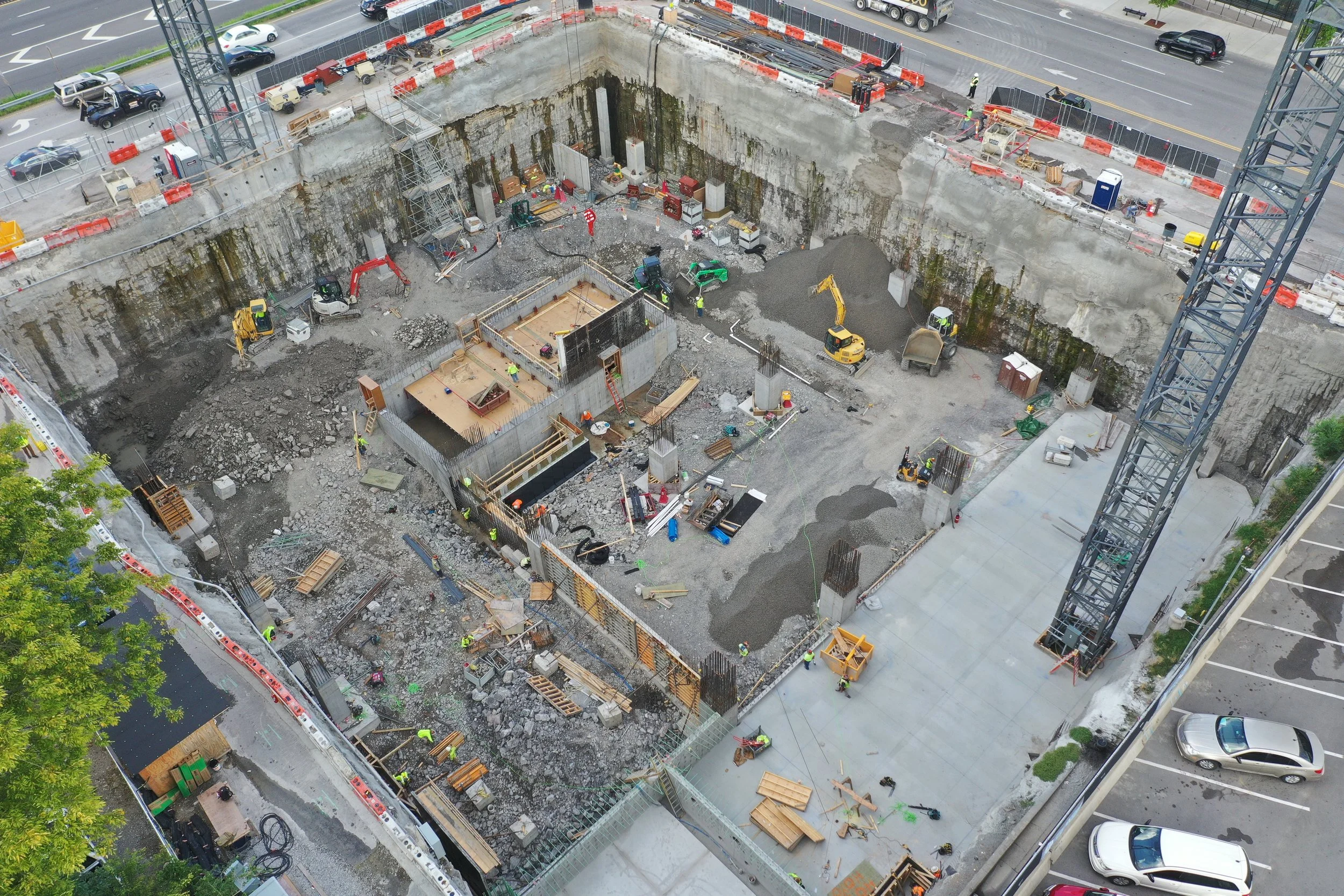 Located at 13th & Broadway, this 24 story office-retail development required the blasting and excavation for 3 floors of below grade parking. On a small footprint and at a busy intersection, this excavation took careful planning to meet the project schedule.